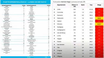 Cabe citar que estos registros obedecen a la restricción operativa impuesta por el feriado del 1ro de Mayo y no laborable del domingo. Como consecuencia de ello, los 593 casos corresponden a la suma de los dos días.