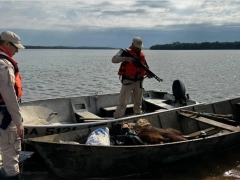 En la costa del río Uruguay, la Prefectura de Monte Caseros, en la provincia de Corrientes, secuestró una embarcación con motor con 80 kilos de carne de carpincho.