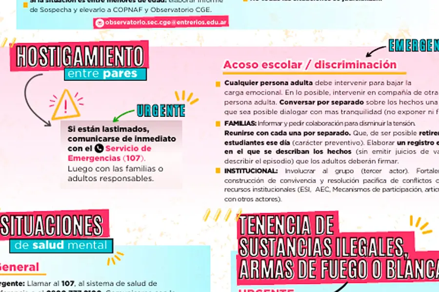 Durante la semana también se difundieron materiales orientados a la prevención e intervención ante situaciones complejas dentro del ámbito escolar. En ese sentido, Zalazar indicó: “Trabajamos no solo en la prevención, sino también en la posvención y la intervención”.
