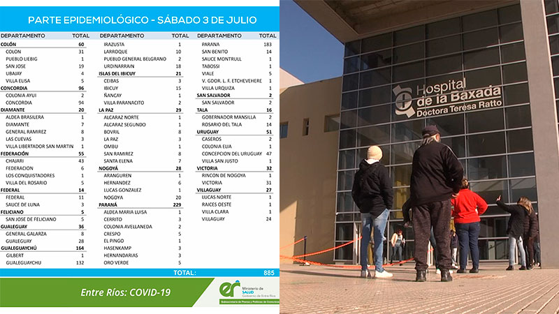 El área de Vigilancias Epidemiológica del Ministerio de Salud, confirmó que en Entre Ríos este sábado se registraron 885 nuevos casos de coronavirus.