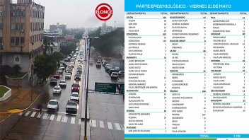 El Ministerio de Salud, especificó las localidades a las que pertenecen los 1.150 pacientes diagnosticados este viernes como positivos de coronavirus en los 17 departamentos y se conocieron los lugares donde se registraron los casos. La distribución de los mismos: