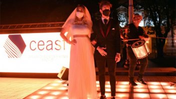 Hubo música, luces, pista de baile, robot luminosos y pantalla gigante, solamente "faltó" el público en el simulado casamiento en Rosario. "Somos una herramienta para que desaparezcan las fiestas clandestinas", dijeron los organiz
