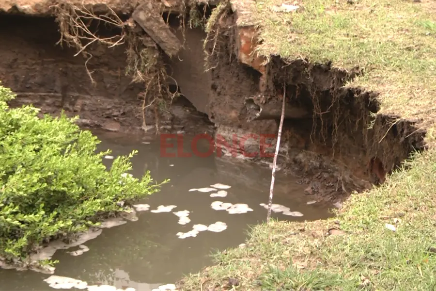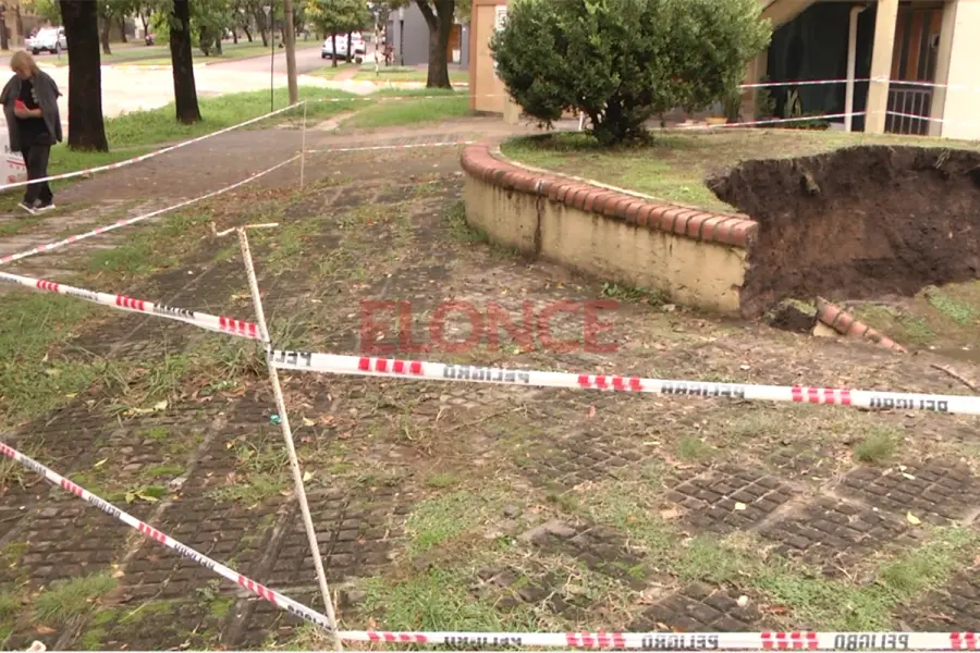 Sobre las características del hundimiento, precisó: “En realidad es del nivel de piso, el tema es que había mucha tierra, porque justo hay un cantero circular que está elevado aproximadamente un metro de altura. Al coincidir la rotura del caño con ese cantero, se derrumbó el muro que lo limitaba. Desde el nivel de piso serán entre 50 centímetros y un metro”.