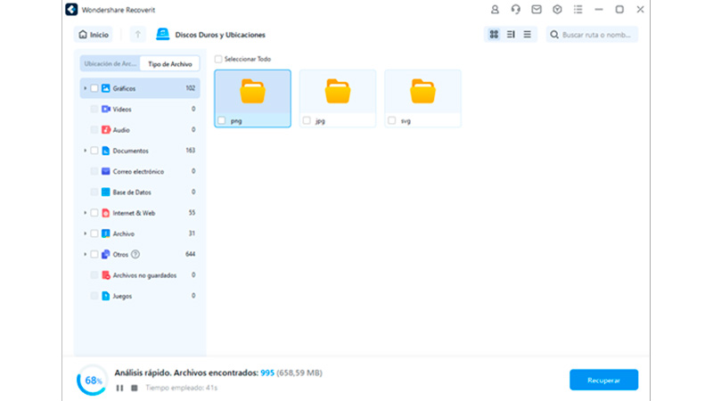 Interfaz accesible para toda clase de usuarios. No necesitás tener estudios informáticos para usar Wondershare Recoverit. Su interfaz es intuitiva y fácil de navegar, con lo que el proceso de recuperación de datos es accesible para usuarios de todos los niveles.