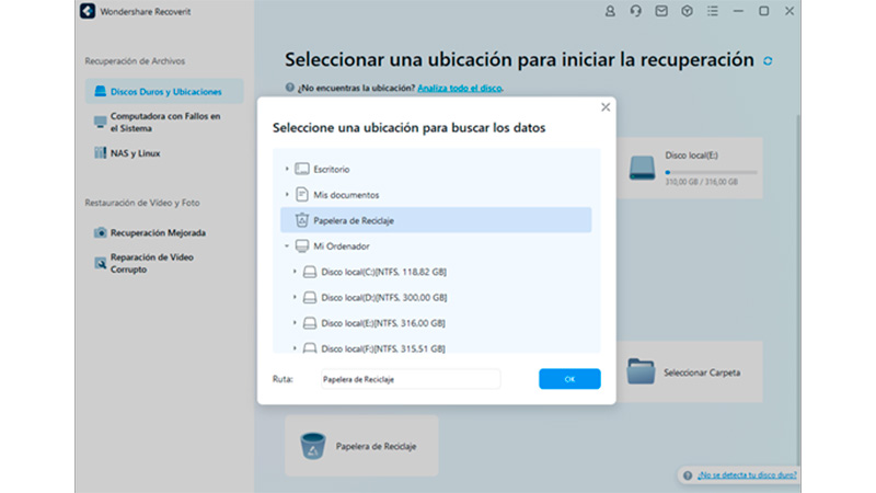 Para restaurar tus datos con Wondershare Recoverit, solo tenés que: