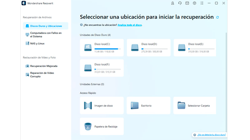 La principal alternativa al servicio técnico Consiste simplemente en descargar e instalar un software de recuperación de datos como Wondershare Recoverit. Estas aplicaciones son realmente fáciles de usar, cuentan con una interfaz apta para toda clase de usuarios, y, en definitiva, son las aplicaciones que utilizará el servicio técnico para hacer justo lo mismo que podrías hacer vos por mucho menos dinero.