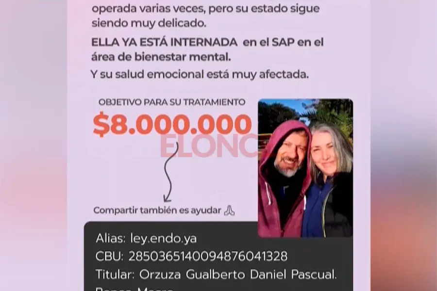 El esposo de la mujer explicó que “desde que Soledad era joven” tenía síntomas pero que “nunca la diagnosticaron como endometriosis” a pesar de que siempre le extraían coágulos, quistes. “Le hacían laparoscópica y seguía un tiempo, pero volvía. En 2021 un médico le hace una resonancia, se le da un estrógeno para que baje la cantidad de sangrado y no forme coágulos pero la situación seguía igual”, recordó Orzuza. Finalmente, un especialista de Buenos Aires encontró cinco focos de endometriosis en el cuerpo de Soledad.