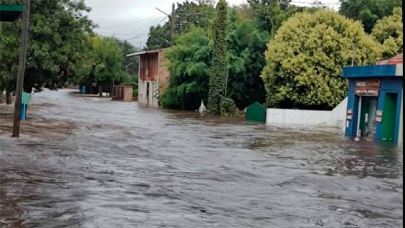 El portal Infomerlo realizó un recorrido por la ciudad y detectó casas y comercios inundados y la lluvia a las 9:45 aún caía de manera torrencial.