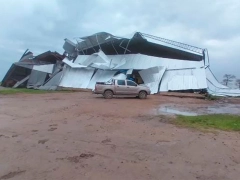 Un fuerte temporal de viento y lluvia que se registró entre la noche del viernes y la madrugada del sábado dejó como saldo la destrucción total de un galpón en la estancia El Paraíso, ubicada en jurisdicción de Alcaraz Sur, departamento La Paz. Elonce accedió a fotos y videos que muestran el estado en el que quedó la estructura, utilizada para el resguardo de maquinarias agrícolas.