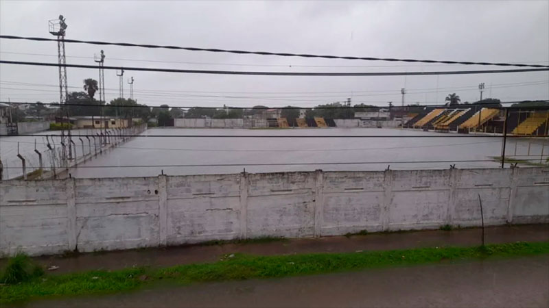 La cancha del Club Deportivo Matienzo en la ciudad correntina de Goya quedó bajo agua debido a las intensas precipitaciones que se desarrollaron durante los últimos días.