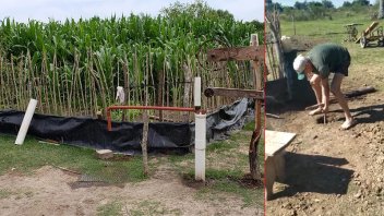 "Me comentó que no tenía insumos para semillas o plantines así que me comprometí a que la próxima semana se lo haría llegar. Luego surgió el tema que no tenían agua apta para el riego ya que en la Aldea donde viven el agua es muy salada, y él dijo que haría un pozo, hoy fui y me encuentro con <b>semejante huerta</b> y nuevamente me sorprendo de su trabajo, donde cada planta tiene la misma separación una de otra, donde los surcos mejor hechos que por una sembradora, donde su maíz mide más de dos metros de alto, acelgas inmensas porque ha fertilizado la tierra con sobrantes de la carpintería y además con riego particular, No solo <b>hizo un pozo de seis metros de profundidad solo</b>, sino que también <b>elaboró un sistema para sacar el agua del mismo con una rueda de bicicleta, una cuerda y unas gomitas</b>. Un genio digno de destacar", recalcó.