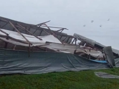 En la jornada del sábado en Colonia 1º de Mayo (departamento Uruguay), una tormenta con granizo y ráfagas de viento provocó destrozos en galpones de pollo de una familia entrerriana.