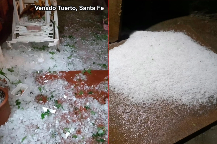 En Venado Tuerto, provincia de Santa Fe, los vecinos compartieron imágenes del granizo acumulado que cubrió calles y patios. La misma situación se replicó en Laboulaye, en el sur de Córdoba, donde se reportaron piedras de gran tamaño.