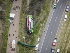 Los cadáveres no pudieron ser retirados hasta tanto, ya en horas de la tarde, una grúa de gran porte se ocupó de mover y levantar el chasis de este ómnibus de doble piso que salió de la calzada de la ruta 2 que lleva hacia la costa, desvió hacia la banquina y terminó volcado sobre un lateral en un zanjón de más de dos metros de profundidad. Las identidades de las fallecidas no se difundieron.