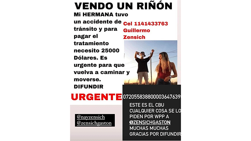 Una joven de 21 quedo cuadripléjica luego de un accidente de tránsito. Su hermano ofreció un riñon para poder afrontar los gastos, se viralizó y en pocas horas juntaron el dinero para la rehabilitación. El caso.