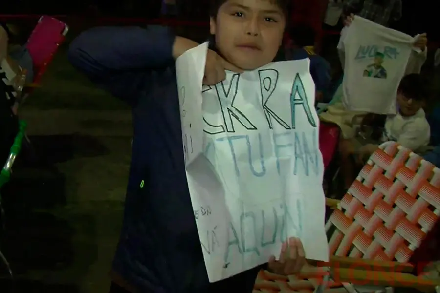 Un niño de Colonia Avellaneda, Paraná, dialogó con Elonce mientras sostenía un cartel dedicado a Luck Ra: “Luck Ra soy tu fan, Joaquín”. “Siempre, cualquier día me animaría a subir a cantar con él”, señaló ante la posibilidad de interpretar una canción junto al artista cordobés.