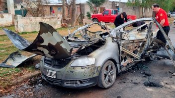 “Al arribo de la dotación, comenzamos a armar la línea de extinción debido a la cantidad de fuego que había en el vehículo. Al iniciar la extinción, se produce la explosión del tubo de GNC, generando una fuerte onda expansiva que provocó roturas de vidrios y otras estructuras de viviendas en la cuadra. Continuamos con la extinción del vehículo, verificamos que no haya heridos en el lugar y recogimos las partes del vehículo que volaron hasta aproximadamente 80 metros”, explicaron desde Bomberos Voluntarios en diálogo con la prensa.