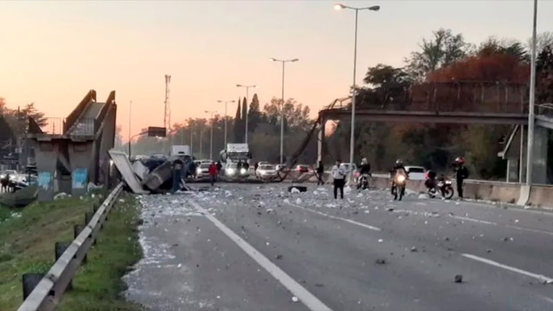 Un puente peatonal cayó esta mañana tras ser embestido por un camión y provocó un corte total de tránsito en el ramal Pilar de la autopista Panamericana, a la altura de la localidad de Fátima, en el partido bonaerense de Pilar.