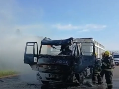 El fuego se desató en la cabina cuando el vehículo circulaba a la altura de Campana. El conductor logró saltar a tiempo y resultó ileso. Bomberos trabajaron para controlar el incendio y restablecer el tránsito en la zona.