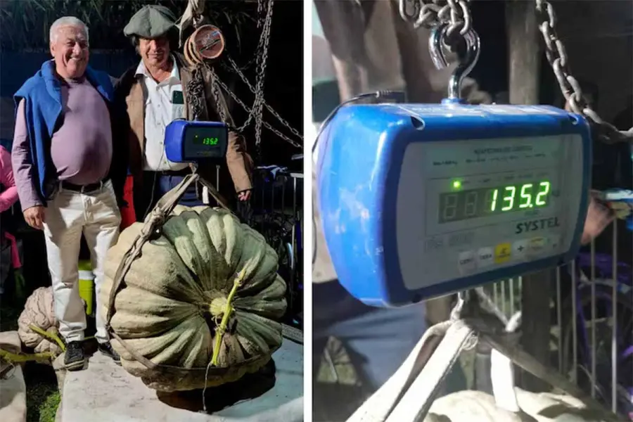 Al año siguiente vio experiencias de cultivo de zapallos gigantes, consiguió semillas y comenzó a investigar. Hoy incluso mantiene contacto con cultivadores de otros países, entre ellos uno de California, que lo guió en el proceso. “Esto tiene técnica, hay que aprender. Yo me fui metiendo de a poco”, explica. Así, ese hobby, con el tiempo, se volvió algo mucho más serio. El resultado de ese recorrido se vio este año: no solo superó su récord anterior —de 111,8 kilos— sino que logró dos ejemplares destacados, uno de 135,2 kilos y otro de 122,6 kilos, en una jornada que coincidió con el 121° aniversario de Alejandro Roca.