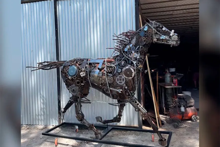 Lo más destacable de su trabajo es la utilización de piezas recicladas. “Todo esto es reciclado, trato de utilizar todo lo que puedo. Las cadenas de bicicleta, por ejemplo, se transforman en las crines del caballo”, comentó. Los detalles en sus esculturas son tan finos que el movimiento parece cobrar vida: desde las crines del caballo hasta la cola, todo está diseñado para dar la sensación de que la figura podría moverse en cualquier momento.