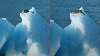 Mientras se maravillaban con los imponentes glaciares del área protegida, los turistas divisaron que sobre un iceberg que flotaba en el espejo de agua había un animal.