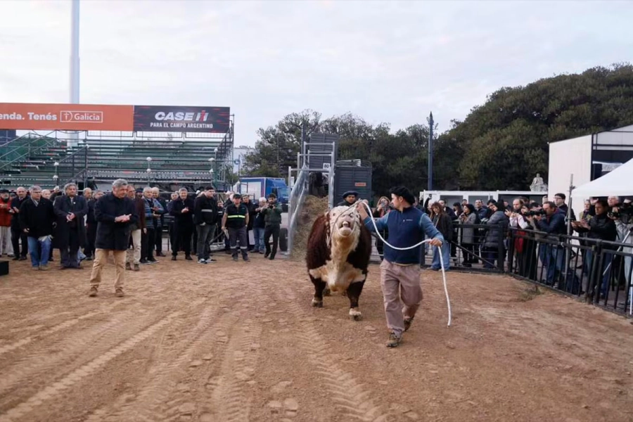 Un toro raza Hereford fue el primer animal en ingresar hoy a la pista central de La Rural de Palermo, con lo que se dio inicio a la Expo Rural 25, que se realizará hasta el 27 de julio próximo.