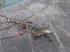 Indicó que “quizás estaba en alguna laguna o curso de agua y seguramente salió a buscar alimento. Lamentablemente también existe la posibilidad de que haya estado en la casa de algún vecino. Es algo que por ahí se toma habitual, pero no es lo que se recomienda porque son animales que tienen cierta peligrosidad. Pueden llegar a morder o golpear con la cola. No hay que tenerlos como mascota”.