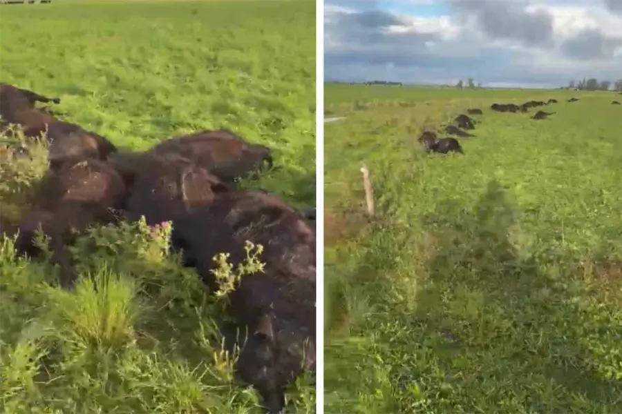 En ese contexto, la descarga eléctrica cayó sobre el cerco perimetral y la corriente se propagó a través del metal, alcanzando a los animales que se encontraban agrupados en ese sector.