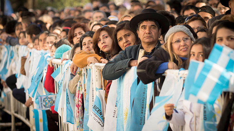 Una multitud colmó las calles céntricas de la ciudad de San Miguel de Tucumán para festejar los 200 años de la Declaración de la Independencia durante los actos oficiales que encabezó el presidente Mauricio Macri.