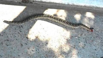 Según se le dijo a 7Paginas, esta víbora media unos 50 centímetros, pero que igual a esta son numerosas las que aparecen en Colonia Ayui; un poblado que está rodeado de quintas y una frondosa vegetación.