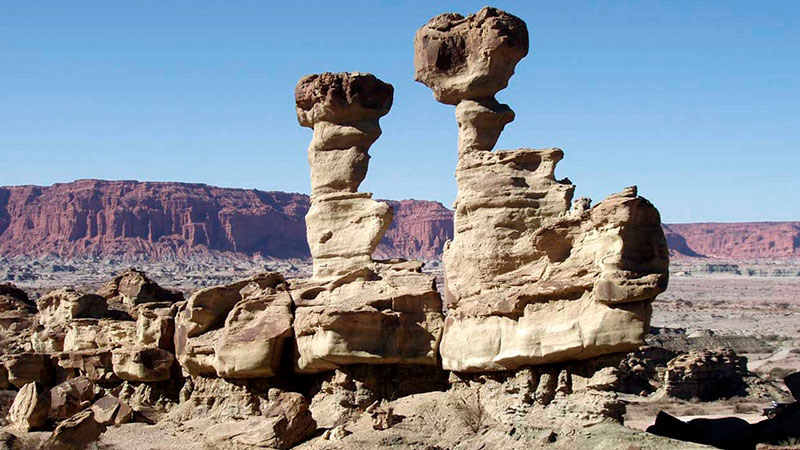 Declarados Patrimonios en el año 2000, Ischigualasto (en San Juan, más conocido como el Valle de la Luna) y Talamapaya (en La Rioja) son dos parques contiguos con más de 275 mil hectáreas de superficie. En ellos se encuentran el conjunto continental de fósiles del Triásico -período que terminó hace 37 millones de años- más completo del mundo.