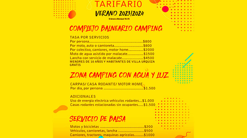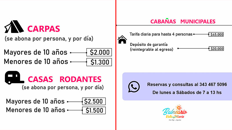 Por otra parte, la Municipalidad de Valle María, dio a conocer que, fueron actualizadas las tarifas para acceder al Balneario-Camping.
