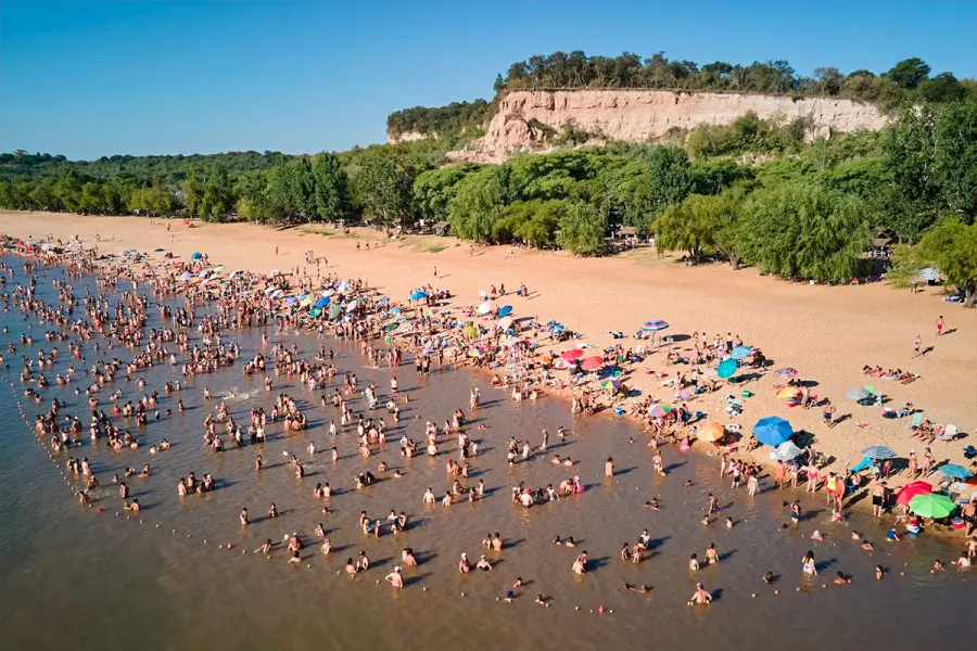 El sector de la playa impresiona visualmente por sus dimensiones y por la amplia cantidad de arena de la que dispone el veraneante para desarrollar actividades relacionadas con el río. Es un sector al que asiste la familia, que habitualmente se traslada desde ciudades para pasar el día completo en el complejo, por las comodidades que brinda.
