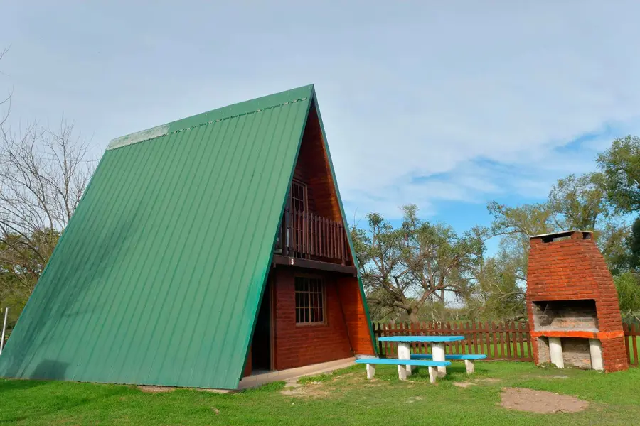 El predio cuenta con cabañas estilo alpino equipado con el confort necesario para aquellas personas que deseen disfrutar de la playa y el rio prescindiendo del camping.