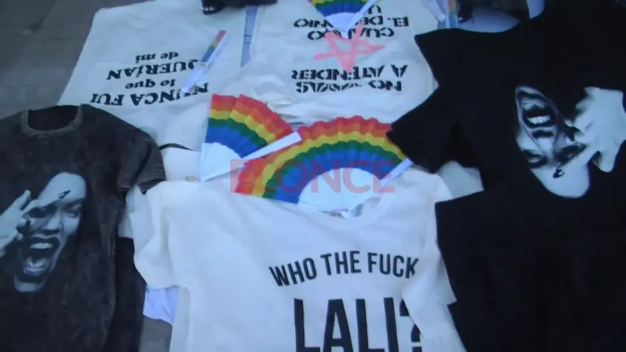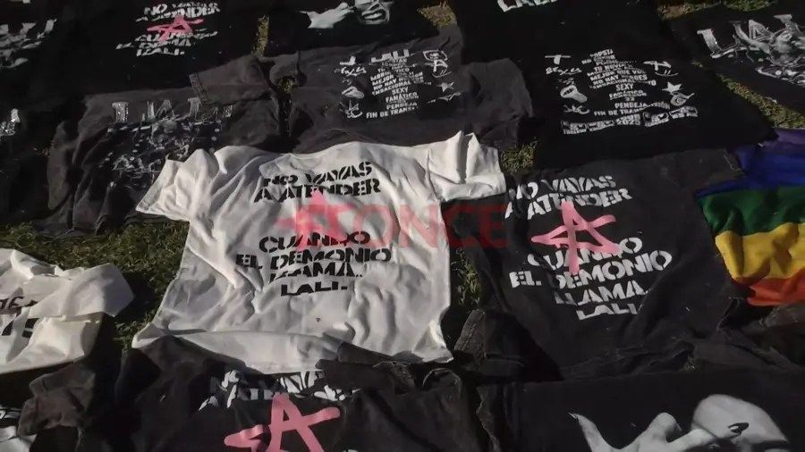 Las remeras cuestan $20.000, hay posters, credenciales, gorritas y banderas. Las vendedoras permanecerán hasta el final del show de Lali. “Cuando termina el show la gente viene y compra”, reconoció.