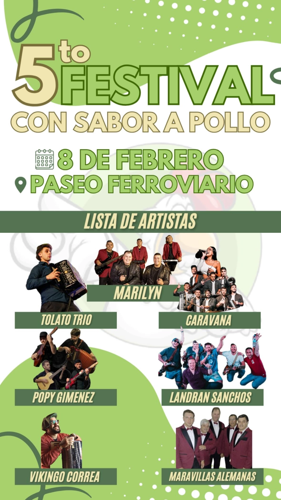 El sábado 8 de febrero se realizará el Festival “Con Sabor a Pollo” en Viale. Habrá un concurso de cocineros, espectáculos en vivo y más de 60 emprendedores ofreciendo productos. Las entradas anticipadas cuestan $4.000.