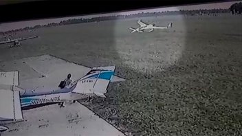 Una cámara de seguridad de uno de los hangares captó el momento cuando el avión impacta contra el suelo, casi pulverizándose en el acto.