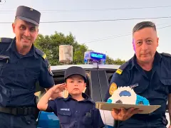 El festejo tuvo como protagonista al cumpleañero, quien para la ocasión se vistió con un traje idéntico al que utiliza el personal policial. El uniforme incluía cinturón reglamentario y hasta un walkie-talkie que simulaba la radio empleada por los efectivos para comunicarse, detalle que llenó de orgullo y alegría al niño.