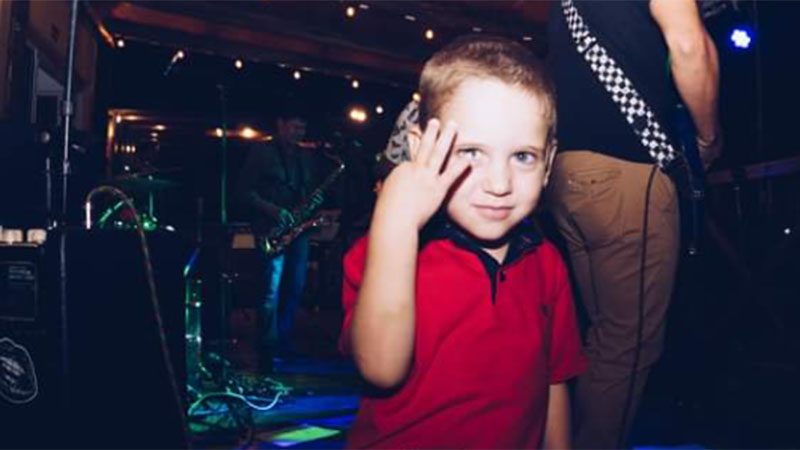 El pequeño se llama Joaquín y nació en Santa Elena. Desde que tenía dos años expresó su admiración por la batería y asistiendo a los ensayos de su padre, que es músico, aprendió a tocar a la perfección.