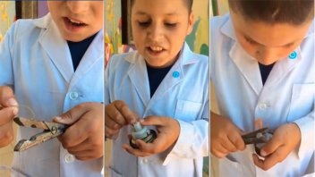 Un alumno santiagueño de nueve años diseñó un juguete artesanal con un broche, una tanza y el plástico de la tapa de una botella, y se hizo viral en las redes sociales.