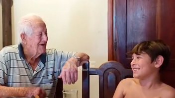 Chicho, de 97 años, se batió en un tierno duelo de payadas con su bisnieto Álvaro, que tiene 9 años y es aficionado a los recitados, supo Elonce. El video del tierno enfrentamiento que terminó con amplias sonrisas.