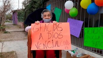 Y este viernes, finalmente, pudo salir, alzando un cartel que, lacónica y contundentemente, expresaba su sensación: "Gracias a Dios vencí al COVID-19". Orgullosa, agradecida a la vida. Y expresó a sus vecinos: "Hagan caso a los médicos, al intendente, cuídense".