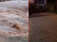 Videos: creció el caudal de agua en La Olla de Aldea Brasilera y granizó en Diamante