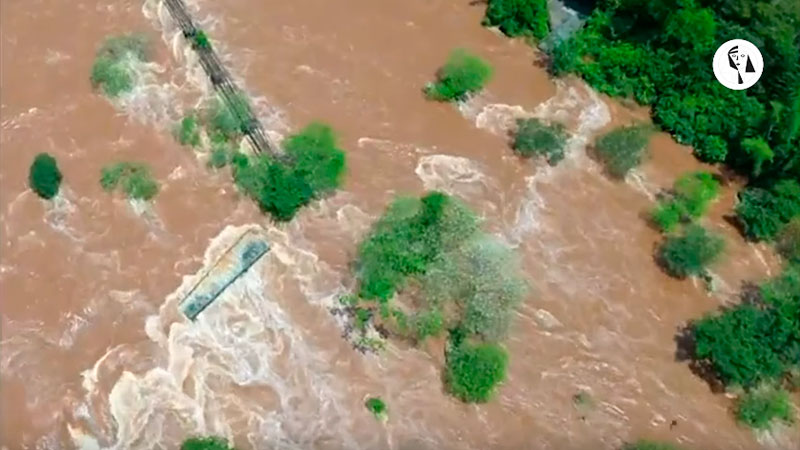 Debido a las intensas lluvias registradas en las altas cuencas, el caudal del río Iguazú aumento de forma considerable y es 14 veces mayor al normal. Video muestra el momento en el que ceden las pasarelas. Imágenes.
