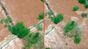 La empresa Iguazú Argentina, concesionaria de los servicios en el Parque, realizó este domingo un sobrevuelo con un dron para evaluar los daños en la pasarela que conduce a Garganta del Diablo, el más espectacular de los 275 saltos que conforman las Cataratas del Iguazú.