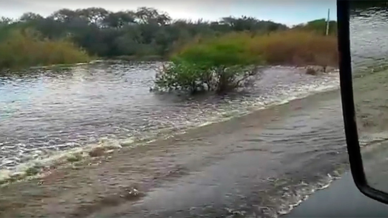 La crecida de ese curso obligó a las autoridades de Vialidad a interrumpir el tránsito por esa ruta nacional en inmediaciones del acceso a Santa Elena, otra localidad del departamento Las Paz fuertemente afectada por las lluvias y la creciente del río Paraná, que provocaron desmoronamientos en las barrancas ribereñas y afectado casas de fines de semana y de residentes permanentes.