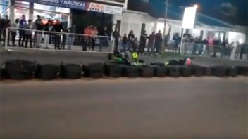 Un tremendo accidente fue protagonizado en la noche de este domingo por uno de los corredores del karting nocturno realizado en un circuito montado sobre avenidas Alem (de Repetto a Pablo Stampa) y 9 de Julio (entre Alem y Chaco) de la ciudad de Chajarí.
