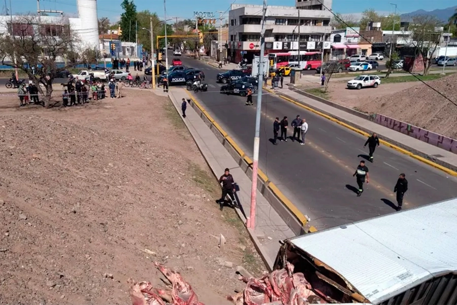La carga del camión que volcó este lunes en el Acceso Este y Cañadita Alegre, en Guaymallén, Mendoza, no pudo ser recuperada. Tras una inspección bromatológica, se determinó que la carne había perdido la cadena de frío y no estaba en condiciones de ser consumida.