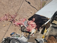Por último, informó que el chofer del camión continuaba fuera de peligro pese a las lesiones sufridas en el siniestro. En cuanto al cálculo de las pérdidas económicas, aclaró, que está siendo evaluado directamente por el frigorífico bonaerense, propietario original de la carga.
